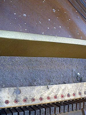 長年の弦の張力でベアリングした部分の鋳物に弦溝がつくとバンバン弦が切れやすくなるのです
