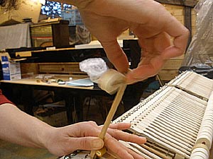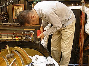 ハンマー装着いよいよ音だし作業、張り込んだ弦の伸びを何回も何回も上げていきます