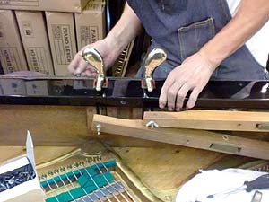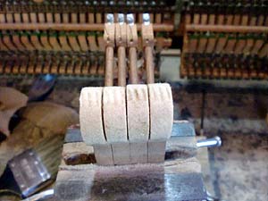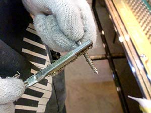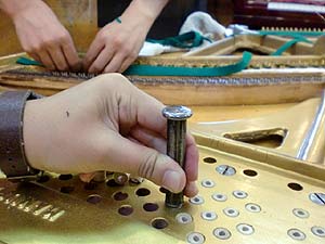 この作業も230本のピンを1個1個まわしながら弦と弦の圧着を高めて行く作業だ