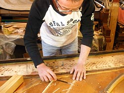 フレームをあげて響板を直さないとどんな新品の弦を張ったとしても、音響効果は改善されない