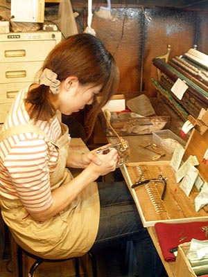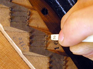 3回目の修理のためにチューニングピンは通常のサイズが合わず、特注サイズとなる