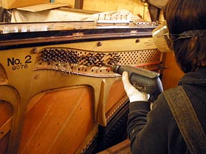 響板がこれだけわれていれば、通常は調律してもすぐ狂ってしまうんです