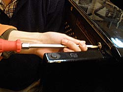 この部分はピアノフレーム、弦が張り込まれた後ではどうしようも、手が入らないところである