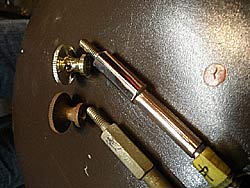 写真は前後になるがチューニングピンブッシュの加工、アメリカから取り寄せたブッシュ.直径はぴたりと収まったのだが高さがぜんぜん
