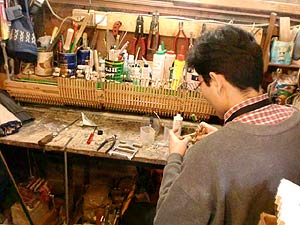 治具を使いぶな木から抉り取る、この部材はよく仏様を彫りぬいたりするときに使う、今ではぶな材は希少な木になってしまった