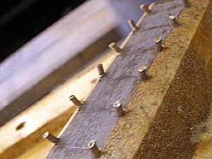 端に位置するために弱い弱い、ここに3本弦が乗っかってくるわけだが、3本で240キロ、1本当たり80キロの張力で張り込まれているのだ