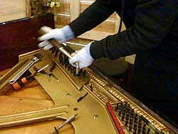 ピアノ下にもぐりこんで響棒1本1本チェック