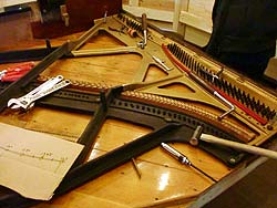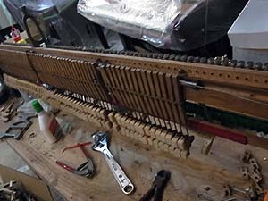こんな状態から本当に直るのか!と思うくらいばらばらになりつつあるルビンシュタインのピアノ、治します、どんな状態からもOK
