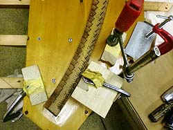 弦圧調整のためフレームを削るこの削り込みの作業は失敗は出来ない