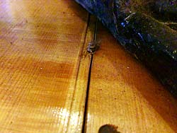 棚板の節穴、節が取れてぽっかり穴が開いています