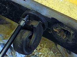 ダンパーペダルの天秤軸も底板が割れた影響もあり