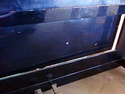 共鳴板これが大きく割れてしまっている、それも相当数割れひびありなのだ20センチ間隔で割れている響板