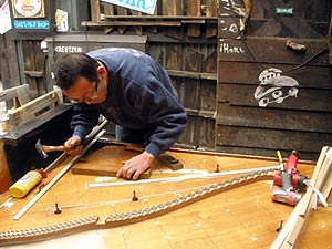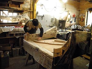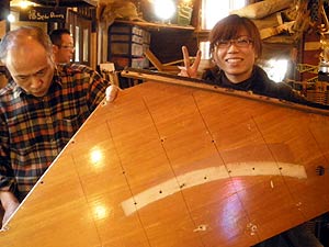 なべさんが早速上側の部分のハガレを直すべく修理に入りました