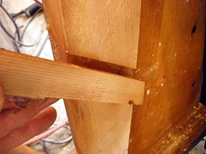 これで入るのか?の厚さでないとNG、カンナで穴の角度に沿って入り込みやすく削る