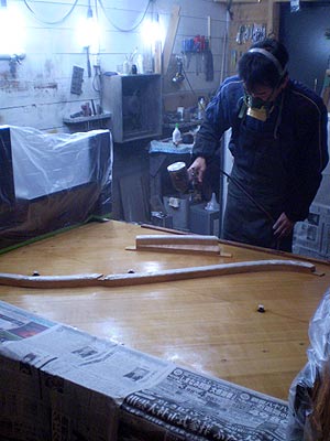 スタインウエイ純正金粉でヤマハU3のフレームを塗装