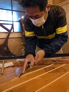 駒割れ接着作業