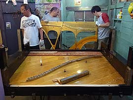 ゆっくりゆっくり落としていくのがこういう古いピアノの弦はずし作業だ