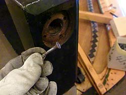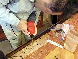 ビス穴、ハガレを締め付けるためにビスで留めていた穴をウッドで埋めなおします