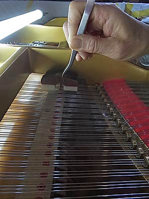 ヤマハC3グランドに消音ユニットの取り付け作業 ハンマーストップバーの取り付け