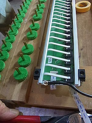 貼りかえた鍵盤木口のカット加工