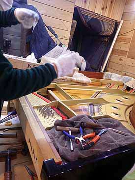 もう一度弦を取外し新品時に戻さなければならない。アクション関係もすでにくたくた状態になる