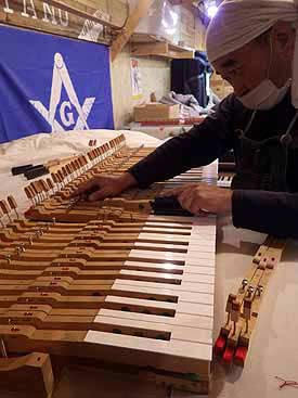 鍵盤ホールの調整しながら鍵盤を入れていく〜〜〜