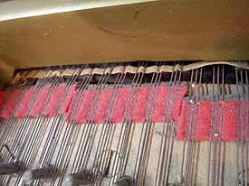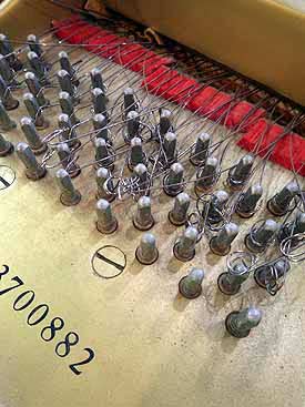 C5、結構使い込んでいるピアノと弦ザビが多く発生、音芯は細い、次高音部s雑音のせいか皮が貼りこまれている