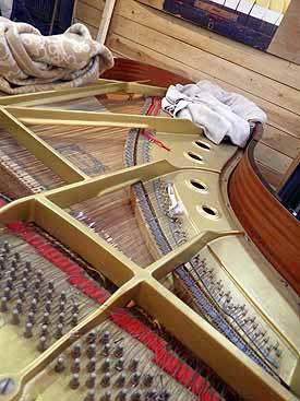 実に重いフレームピアノの9割の重さがこのフレームだ、世の中にこんな重い楽器ができたのはすごいことだ