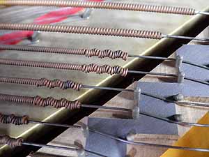 この小さな板が弦圧を白湯するかなめな所だ 弦を張りこんでしまったらここはもういじることができない