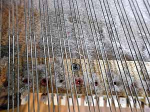 ここはけん盤下に隠れてしまうところだこのピンの大切さは調律師が一番よく知っている
