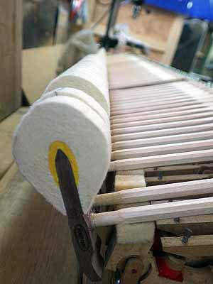 ダンパーフェルトバスげん部は合わせながらカット接着していく、これGPのやり方だ