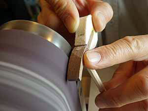 フレームの下にあるものだこの木の厚さを削り込みフレームと弦圧関係の調整をする