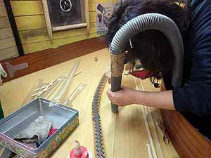 レバーについている鉛の加締め作業 この鉛が緩むとえらい雑音になるが