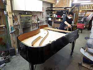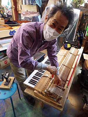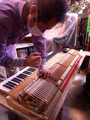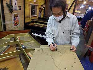 ヤマハの調律師さんも覗き込む’モデル