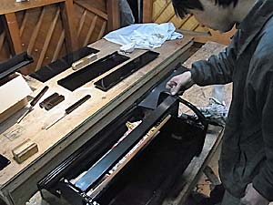 至難の業、ふつうのピアノの鍵盤を入れるほうが50倍楽なのだ