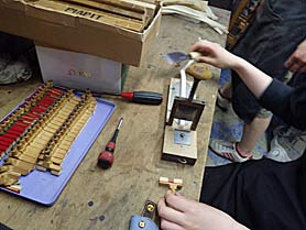弦圧の取り直し作業あり得ないくらい弦圧がある、これではフレーム共鳴板に大きな負担がかかる