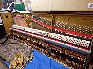 一瞬買い替えようかな。と誰でも頭をよぎるに違いない、しかし直すことができると思えば愛着もあるピアノだ、よみがえればオーナーとしてはとてもうれしい話だ、そこのところの仕事はピアピットというわけであり、1週間以上ピアピットでねかして梱包を解く