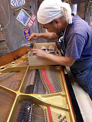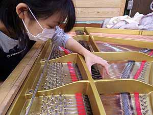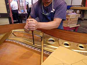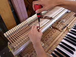 ダンパー調整作業この作業は調律師にとって一番難しい作業