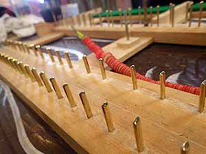 弦張り込み作業 チューニングピンもサイズアップ弦はレスロー弦を使用