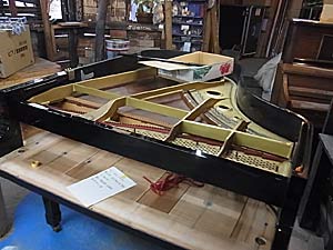 出来上がりがスーパーなピアノに変身する、共鳴板も割れはあるが直せば全く問題なく使える