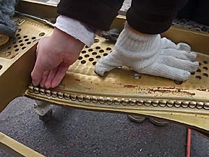 一気に緩めるのはタブー。何十年間も張りこんでいた19トンにも及ぶ弦張力