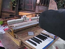 整音ボイシング作業だ 同時打弦等を見ながら音色を決めていく
