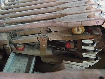 この筬〜鍵盤がのりその上にサポート部分が乗っかっていく基本部分の動きは確実に調整精査しなくてはならない。そのうえで初めて整調が執り行うことができるのだ