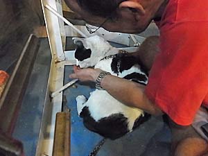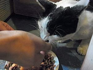 食が細いのに心配したナベサン自らカンズメを食べて見せシロクビちゃんにほら、食べれ! すると