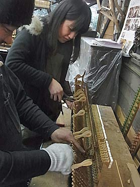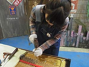 レスロー弦が張りこまれていく大橋ピアノ シロクビ4匹目のネズミを捕り