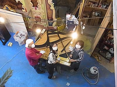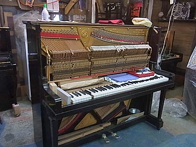 よく立っていられているくらい割れがあり 今度大きな地震では必ず倒れるというくらいかろうじて立っているピアノでした。