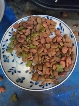 むしゃむしゃ食べ始めた すぐにホタテ解凍してチン、 おいしそうにバクバク食べる、ナベサンうれしそうだあ〜〜
