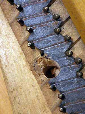 駒埋め木同じ堅木で埋め込む2か所埋めるために1個埋めたらさらに隣を穴空け同じように埋め込む