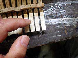 連打ができなくなるというか弾いていて突然音抜けがする、音が出なくなる一瞬自分の演奏が悪いのかと思う感じで症状がでる。ここを見極め出来る調律師はなかなかいない。なぜなら音が出ない原因は鍵盤にあると教科書に書かれてしまっていたりする。それを鵜呑みにして鍵盤をこじる・・・・治らない治るはずがない原因が違う
