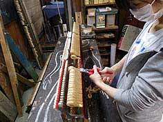 弦圧調整カンナがけ。フレームを下げることにより弦圧が生まれます
